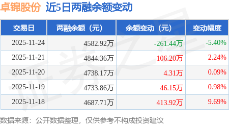 证券之星消息,11月24日,卓锦股份(688701)融资买入210.68万元,融资偿还472.12万元,融资净卖出261.44万元,融资余额4582.92万元。