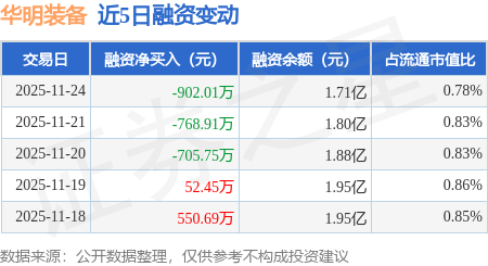 证券之星消息,11月24日,华明装备(002270)融资买入1160.56万元,融资偿还2062.57万元,融资净卖出902.01万元,融资余额1.71亿元。