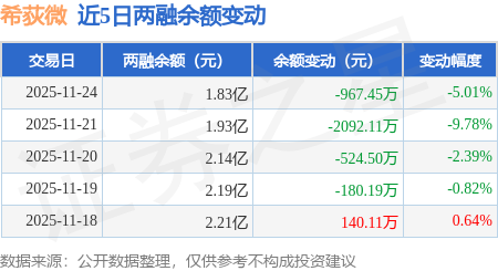 证券之星消息,11月24日,希荻微(688173)融资买入710.43万元,融资偿还1686.06万元,融资净卖出975.64万元,融资余额1.83亿元,近20个交易日中有11个交易日出现融资净买入。