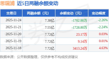 证券之星消息,11月24日,思瑞浦(688536)融资买入4113.92万元,融资偿还5783.54万元,融资净卖出1669.62万元,融资余额7.36亿元,近20个交易日中有12个交易日出现融资净买入。