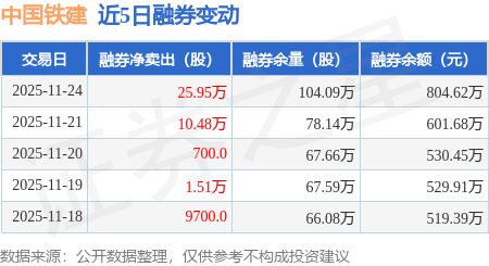 证券之星消息,11月24日,中国铁建(601186)融资买入1746.63万元,融资偿还3720.55万元,融资净卖出1973.92万元,融资余额21.54亿元。