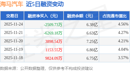 证券之星消息,11月24日,海马汽车(000572)融资买入2.43亿元,融资偿还2.68亿元,融资净卖出2509.73万元,融资余额6.38亿元。