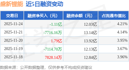 证券之星消息,11月24日,盛新锂能(002240)融资买入7923.68万元,融资偿还1.9亿元,融资净卖出1.11亿元,融资余额12.03亿元,近20个交易日中有11个交易日出现融资净买入。