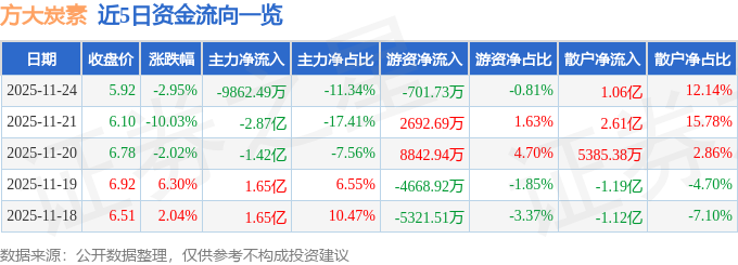 11月24日的资金流向数据方面,主力资金净流出9862.49万元,占总成交额11.34%,游资资金净流出701.73万元,占总成交额0.81%,散户资金净流入1.06亿元,占总成交额12.14%。