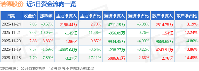 11月24日的资金流向数据方面,主力资金净流入2196.44万元,占总成交额2.79%,游资资金净流出4711.19万元,占总成交额5.98%,散户资金净流入2514.75万元,占总成交额3.19%。