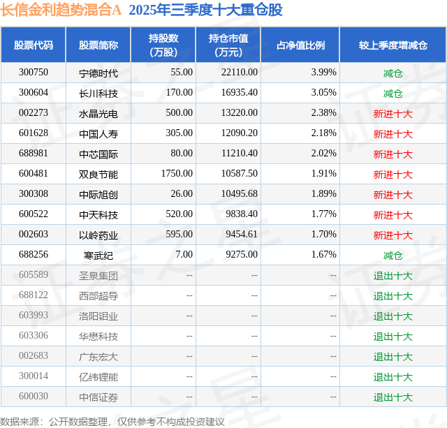 根据2025基金Q3季报公募基金重仓股数据,重仓该股的公募基金共8家,其中持有数量最多的公募基金为长信基金的长信金利趋势混合A。长信金利趋势混合A目前规模为40.3亿元,最新净值0.3943(4月30日),较上一交易日下跌0.15%,近一年下跌4.06%。该公募基金现任基金经理为高远。高远在任的基金产品包括:长信均衡策略一年持有混合A,管理时间为2022年12月13日至今,期间收益率为15.61%;长信均衡优选混合A,管理时间为2023年7月4日至今,期间收益率为34.17%。