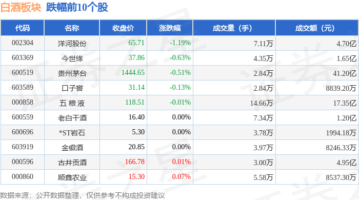 证券之星消息,11月25日白酒板块较上一交易日下跌0.26%,洋河股份领跌。当日上证指数报收于3870.02,上涨0.87%。深证成指报收于12777.31,上涨1.53%。白酒板块个股涨跌见下表:
