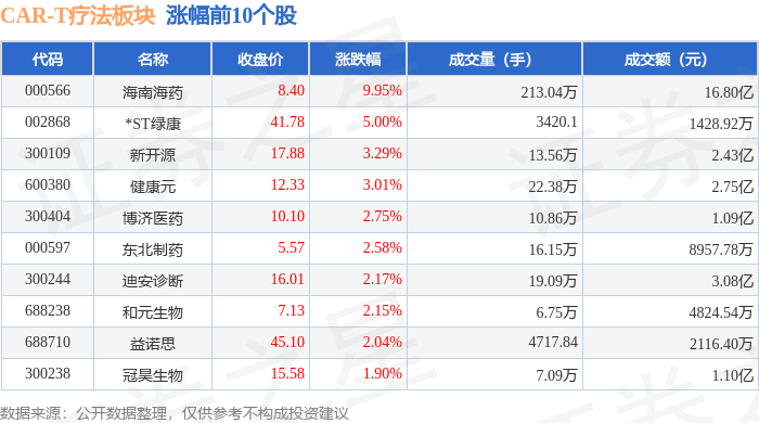 证券之星消息,11月25日CAR-T疗法板块较上一交易日上涨0.8%,海南海药领涨。当日上证指数报收于3870.02,上涨0.87%。深证成指报收于12777.31,上涨1.53%。CAR-T疗法板块个股涨跌见下表: