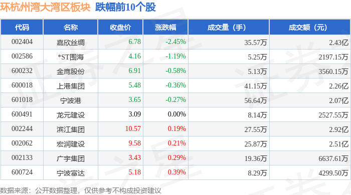 从资金流向上来看,当日环杭州湾大湾区板块主力资金净流入3874.11万元,游资资金净流出1071.63万元,散户资金净流出2802.48万元。环杭州湾大湾区板块个股资金流向见下表: