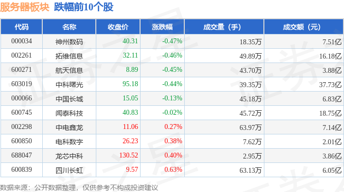从资金流向上来看,当日服务器板块主力资金净流出7.92亿元,游资资金净流出1.24亿元,散户资金净流入9.16亿元。服务器板块个股资金流向见下表:
