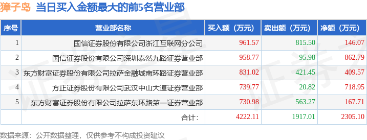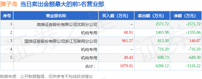 证券之星消息,沪深交易所2025年11月25日公布的交易公开信息显示,獐子岛(002069)因日跌幅偏离值达到7%的前5只证券登上龙虎榜。此次是近5个交易日内第2次上榜。