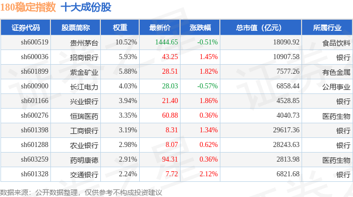 证券之星消息,11月25日,180稳定(000125)指数报收于11925.83点,涨0.56%,成交801.77亿元,换手率0.3%。当日该指数成份股中,上涨的有54家,中国人保以3.85%的涨幅领涨,下跌的有30家,中国国航以3.01%的跌幅领跌。