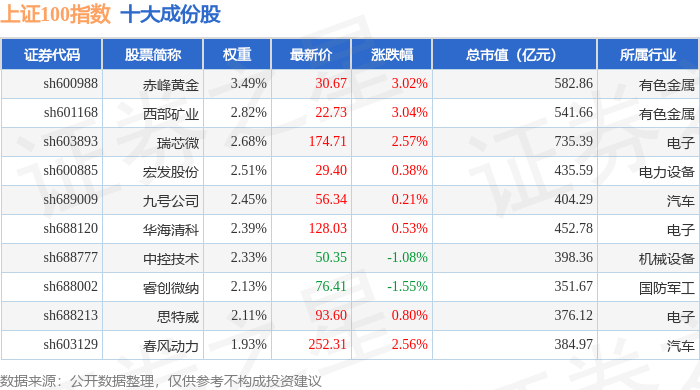 证券之星消息,11月25日,上证100(000132)指数报收于5720.78点,涨1.0%,成交325.57亿元,换手率1.24%。当日该指数成份股中,上涨的有72家,金盘科技以6.64%的涨幅领涨,下跌的有25家,彤程新材以3.1%的跌幅领跌。