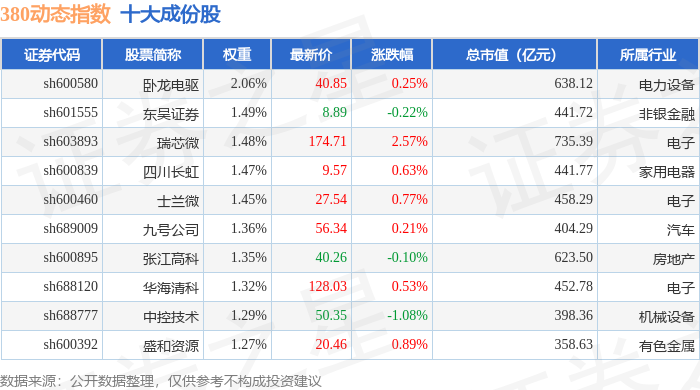 380动态(000141)指数十大成份股详情如下: