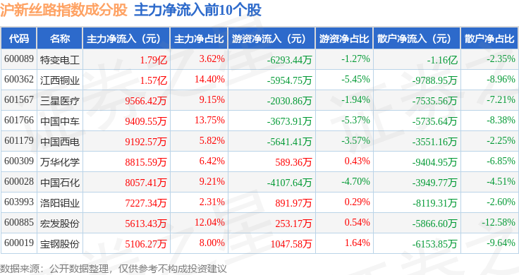 资金流向方面,沪新丝路(000160)指数成份股当日主力资金净流入合计1.16亿元,游资资金净流入合计1.94亿元,散户资金净流出合计3.1亿元。成份股资金流向详情见下表: