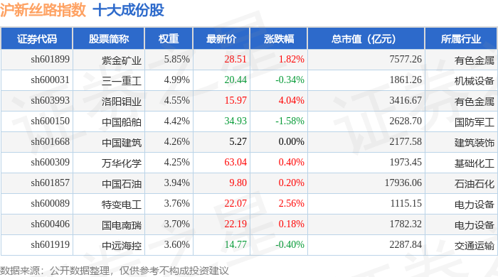 沪新丝路(000160)指数十大成份股详情如下: