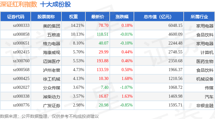 深证红利(399324)指数十大成份股详情如下: