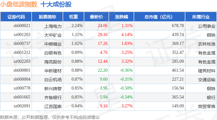 证券之星消息,11月25日,小盘低波(399408)指数报收于15072.37点,涨0.59%,成交377.16亿元,换手率1.02%。当日该指数成份股中,上涨的有88家,方大炭素以9.97%的涨幅领涨,下跌的有54家,派林生物以1.69%的跌幅领跌。