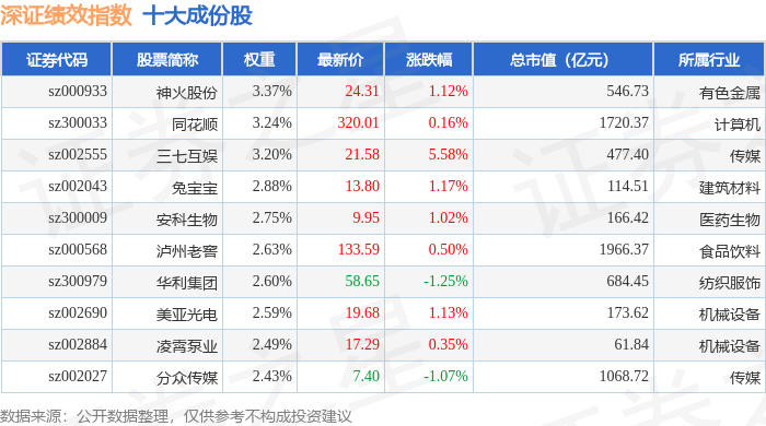证券之星消息,11月25日,深证绩效(399655)指数报收于10641.75点,涨0.86%,成交674.74亿元,换手率1.3%。当日该指数成份股中,上涨的有67家,科德教育以19.99%的涨幅领涨,下跌的有29家,中信特钢以2.97%的跌幅领跌。