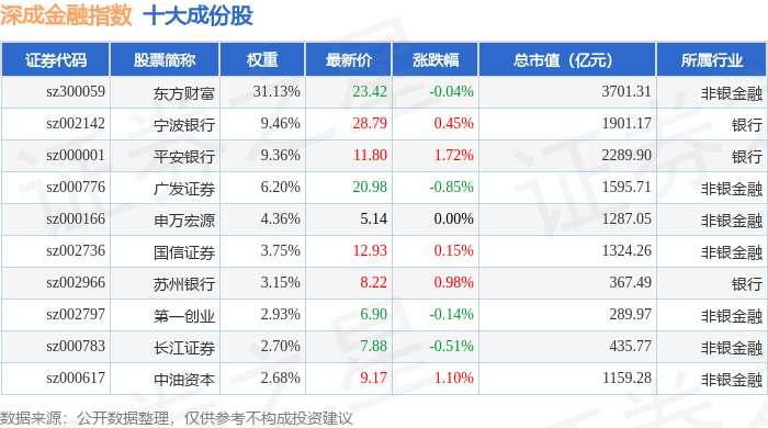 深成金融(399686)指数十大成份股详情如下: