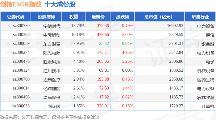 证券之星消息,11月25日,创指ESGR(470028)指数报收于3455.7点,涨1.82%,成交1401.87亿元,换手率3.15%。当日该指数成份股中,上涨的有61家,菲利华以6.69%的涨幅领涨,下跌的有15家,中航成飞以1.71%的跌幅领跌。