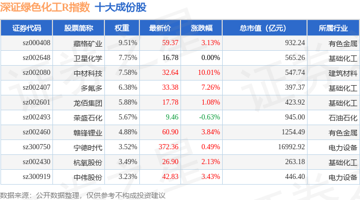 深证绿色化工R(470076)指数十大成份股详情如下: