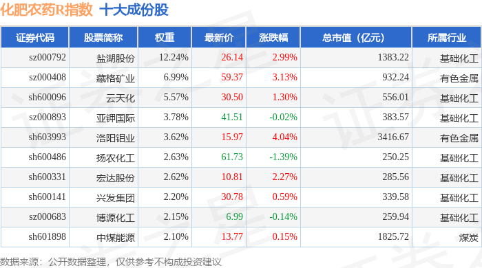 资金流向方面,化肥农药R(480035)指数成份股当日主力资金净流入合计5.54亿元,游资资金净流入合计8870.29万元,散户资金净流出合计6.41亿元。成份股资金流向详情见下表: