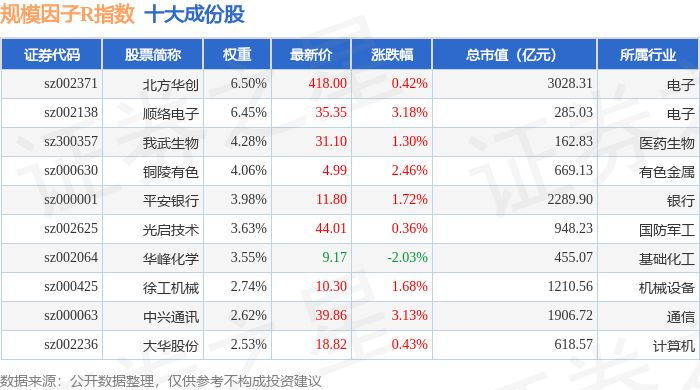 规模因子R(480055)指数十大成份股详情如下: