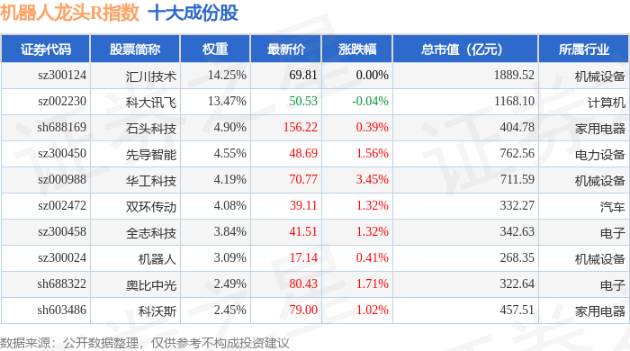 证券之星消息,11月25日,机器人龙头R(480071)指数报收于2515.45点,涨0.59%,成交290.21亿元,换手率2.12%。当日该指数成份股中,上涨的有26家,凌云光以10.18%的涨幅领涨,下跌的有22家,川仪股份以3.25%的跌幅领跌。