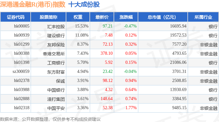 深港通金融R(港币)(483026)指数十大成份股详情如下: