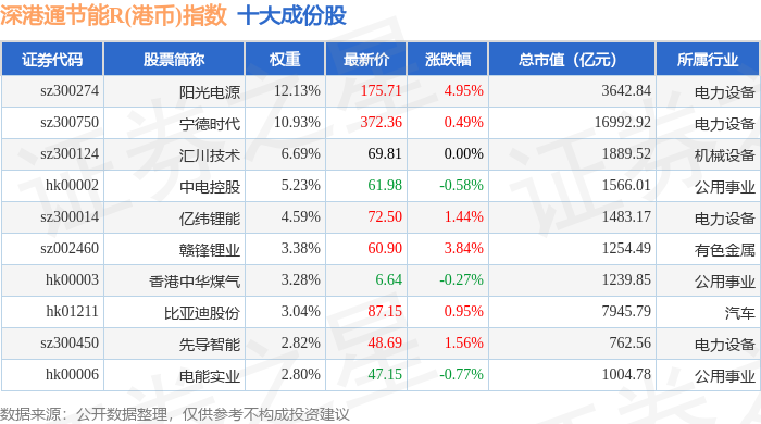 深港通节能R(港币)(483086)指数十大成份股详情如下: