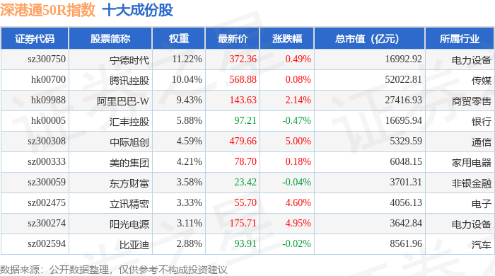 证券之星消息,11月25日,深港通50R(483091)指数报收于2471.99点,涨0.75%,成交1416.86亿元,换手率0.41%。当日该指数成份股中,上涨的有31家,中际旭创以5.0%的涨幅领涨,下跌的有18家,百济神州以2.57%的跌幅领跌。