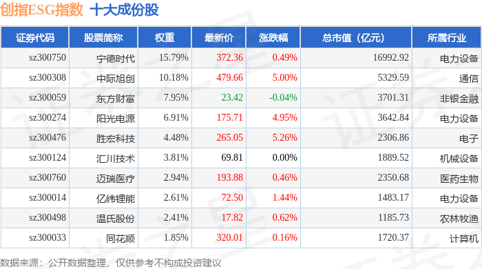 资金流向方面,创指ESG(970028)指数成份股当日主力资金净流入合计23.55亿元,游资资金净流出合计7.63亿元,散户资金净流出合计15.91亿元。成份股资金流向详情见下表: