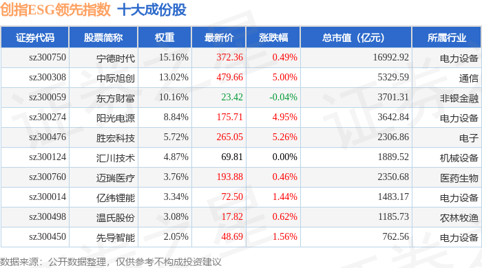 资金流向方面,创指ESG领先(970031)指数成份股当日主力资金净流入合计28.51亿元,游资资金净流出合计10.75亿元,散户资金净流出合计17.76亿元。成份股资金流向详情见下表: