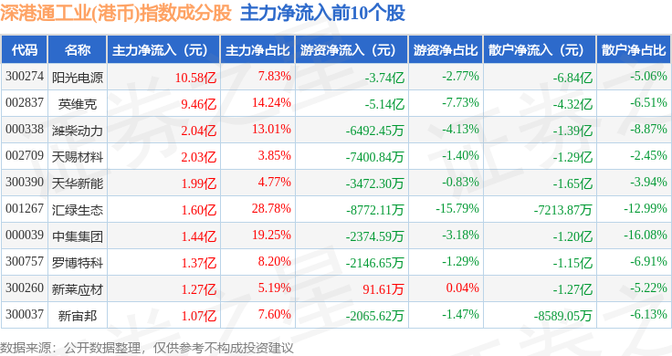 资金流向方面,深港通工业(港币)(983018)指数成份股当日主力资金净流入合计22.41亿元,游资资金净流入合计1.52亿元,散户资金净流出合计23.93亿元。成份股资金流向详情见下表: