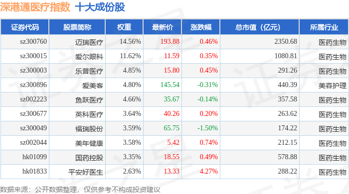 近10日内深港通医疗(983035)指数成份股做了调整,新纳入了1只股票。