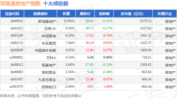 证券之星消息,11月25日,深港通房地产(983071)指数报收于2387.83点,涨0.09%,成交119.21亿元,换手率1.02%。当日该指数成份股中,上涨的有33家,盈新发展以10.17%的涨幅领涨,下跌的有28家,世联行以10.13%的跌幅领跌。