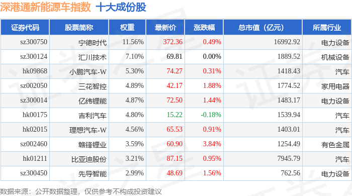 深港通新能源车(983087)指数十大成份股详情如下: