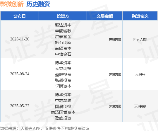 证券之星消息,根据天眼查APP于11月20日公布的信息整理,无锡影微创新科技发展有限公司Pre-A轮融资,融资额未披露,参与投资的机构包括毅达资本,申能诚毅,洪泰基金,影石创新,尚颀资本,中信金石。