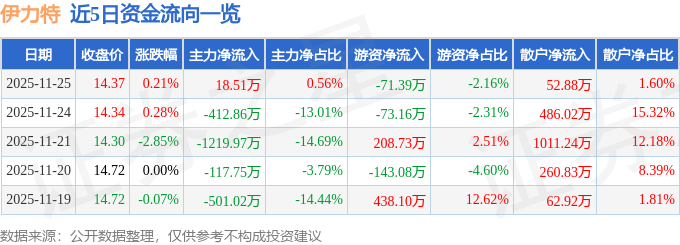 证券之星消息,截至2025年11月25日收盘,伊力特(600197)报收于14.37元,上涨0.21%,换手率0.49%,成交量2.31万手,成交额3311.91万元。
