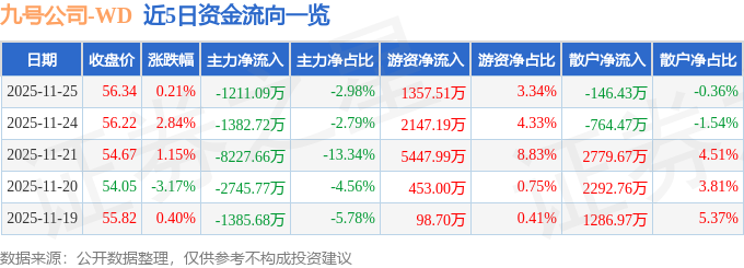 证券之星消息,截至2025年11月25日收盘,九号公司(689009)报收于56.34元,上涨0.21%,换手率1.3%,成交量7.18万手,成交额4.06亿元。