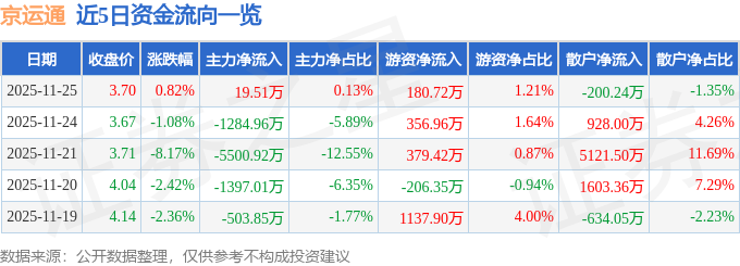 证券之星消息,截至2025年11月25日收盘,京运通(601908)报收于3.7元,上涨0.82%,换手率1.66%,成交量40.18万手,成交额1.49亿元。