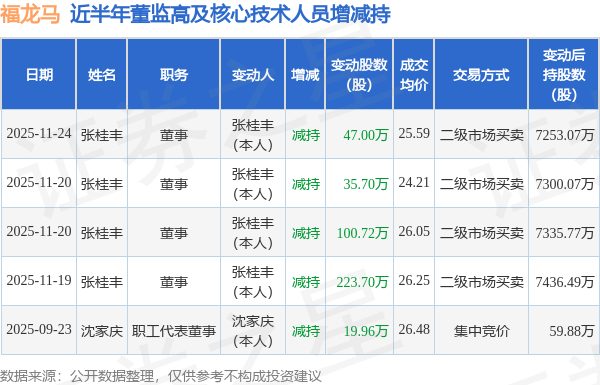 福龙马近半年内的董监高及核心技术人员增减持详情如下:
