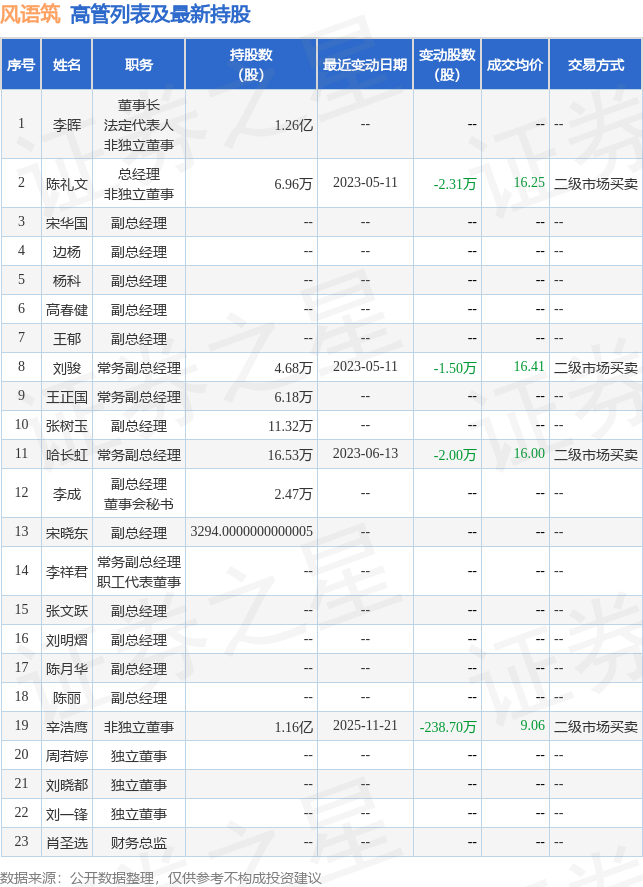 风语筑的高管列表及最新持股情况如下: