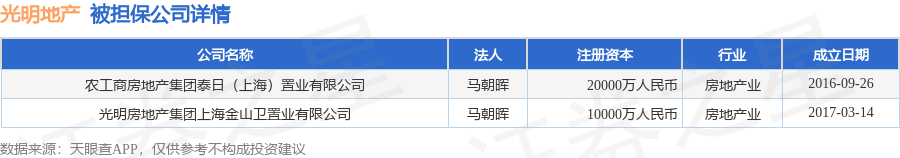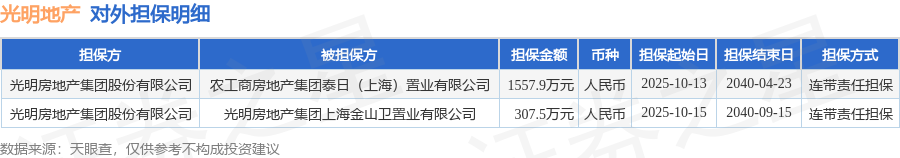 光明地产11月24日披露2笔对外担保,被担保公司2家。对外担保明细如下表: