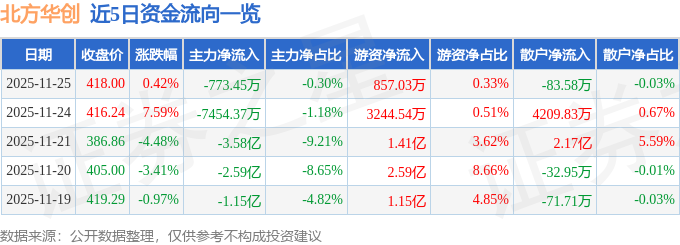 证券之星消息,截至2025年11月25日收盘,北方华创(002371)报收于418.0元,上涨0.42%,换手率0.85%,成交量6.16万手,成交额25.8亿元。