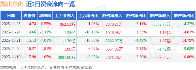 11月25日的资金流向数据方面,主力资金净流入962.53万元,占总成交额1.26%,游资资金净流入2370.21万元,占总成交额3.11%,散户资金净流出3332.73万元,占总成交额4.37%。