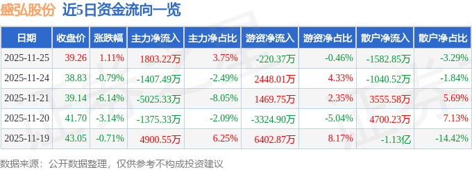 证券之星消息,截至2025年11月25日收盘,盛弘股份(300693)报收于39.26元,上涨1.11%,换手率4.51%,成交量12.13万手,成交额4.81亿元。