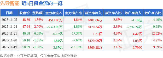 11月25日的资金流向数据方面,主力资金净流入4511.08万元,占总成交额1.84%,游资资金净流入6481.86万元,占总成交额2.65%,散户资金净流出1.1亿元,占总成交额4.49%。