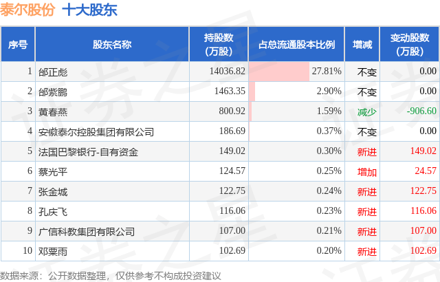 根据泰尔股份2025年三季报公布的十大股东详情如下: